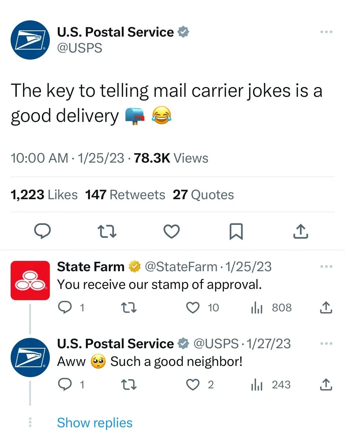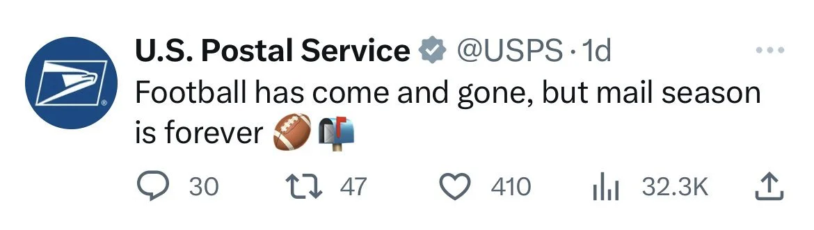 USPS is supposed to be a big, boring brand โ but their social presence is hella fun. Here are a few posts I wrote to prove my case. Your move UPS ๐